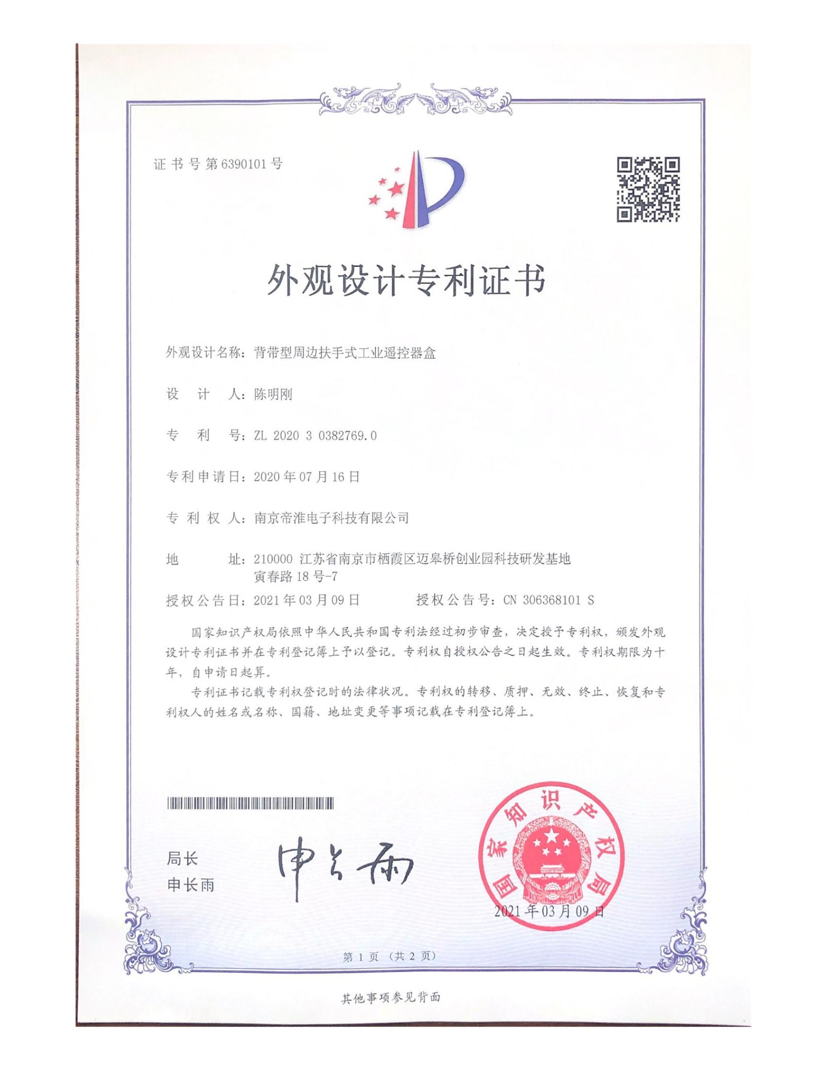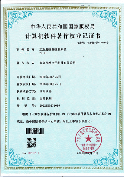 南京帝淮电子科技有限公司,国内工业??仄餍幸盗炀笠?,自主研发、定制、非标设计各类工业级无线??仄?、工业级有线控制器、智能化自主算法逻辑的本地控制器等系列产品。已经申请及正在申请的技术专利、外观专利有近三十项左右,并通过了CE欧盟认证、国家级试验检验报告、EMC电磁兼容认证等。
